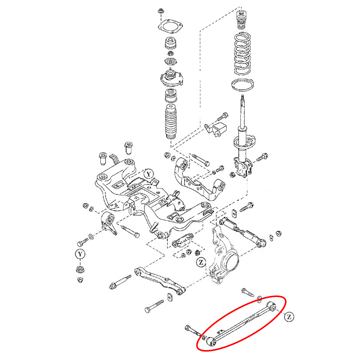 Рычаг задний Mazda Familia/ Ford Laser Lidea '98-'04/ Premacy/ Ford Ixion '99-'05 правый нижний продольный 4WD контрактный