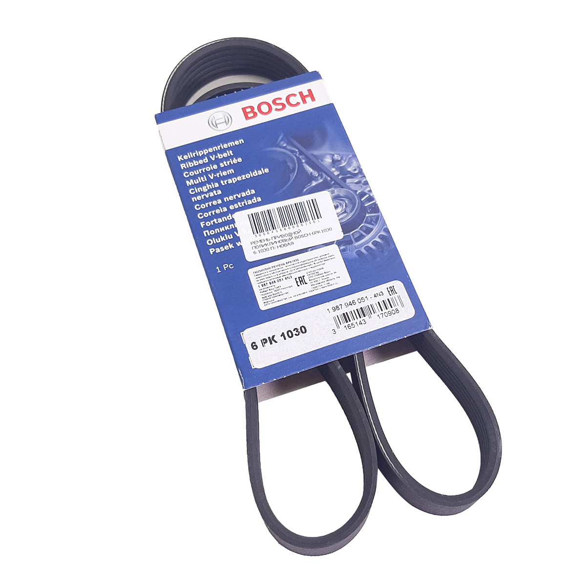 Ремень приводной поликлиновый 6 ручейковый длиной 1030 мм. производства Bosch 6PK1030 по цене 1220 руб. для автомобилей Nissan Liberty '98-'05 (SR20DE, SR20DET), Primera '95-'01 (SR20DE, SR20VE, SR18DE), Primera '01-'07 (SR20VE), Tino '98-'03 (SR20DE), X-Trail '00-'07 (SR20VET) с ОЕМ-ремня: 119209F500, 1987946051