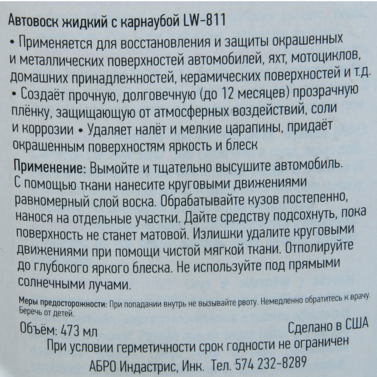 Полироль для кузова 473 мл. Abro LW900 автовоск карнауба жидкий