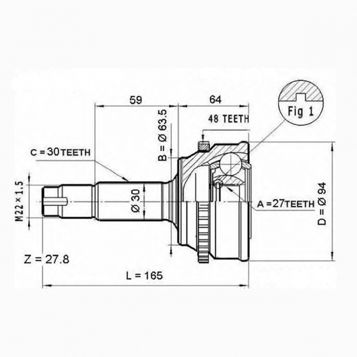 Шрус наружный переднего привода 27x63x30 ABS Febest 0110-060A48 для автомобилей: